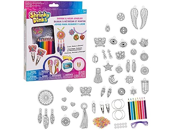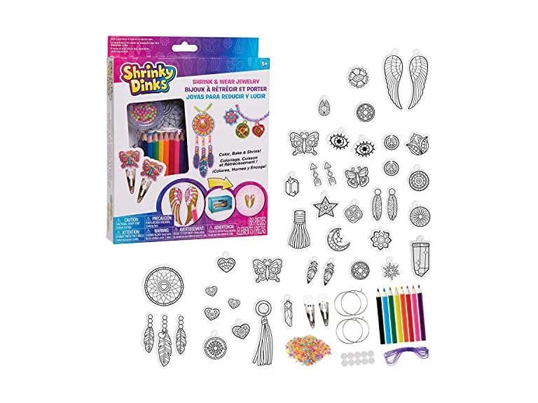 - Just Play Shrinky Dinks 68-piece Jewelry Kit, Includes Beads, Barrettes, Elastic String and Earring Hoops, Easter Basket Fillers, Gifts, Presents, Kids Toys for Ages 5 Up