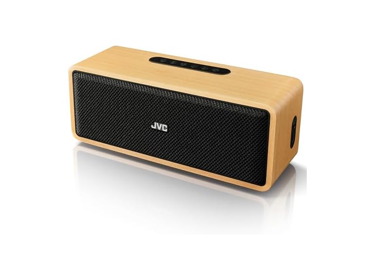 - VINTAGE STYLE, MODERN USE: Turn heads with a speaker that’s both tech and decor. With its genuine wood design, this JVC Bluetooth speaker fits stylish homes, retro offices, or minimalist setups—perfect for listeners who value aesthetics and functionality.