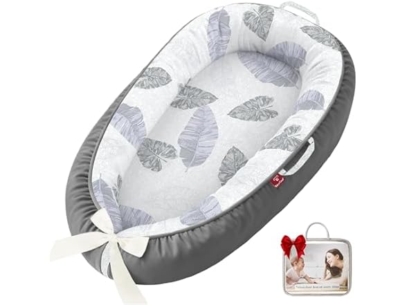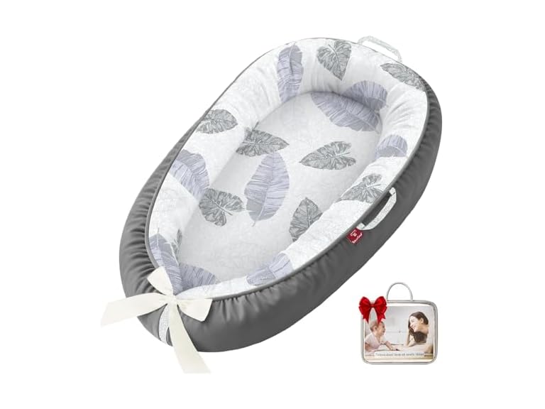 - 【Double-side Use & Adjustable】 Our infant lounger offers a double-sided design with different colors, allowing you to change either sides you want. Both sides are made of high-quality cotton fabric that is soft and skin-friendly. Additionally, this baby lounger for newborn features an adjustable bow tie that allows you to customize the size and shape of the nest, making it suitable for babies aged 0-24months.