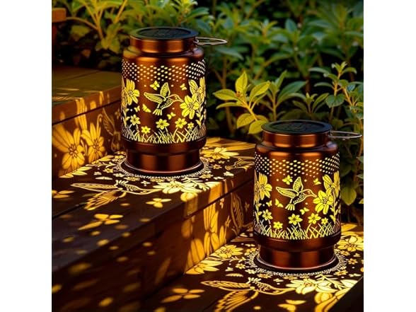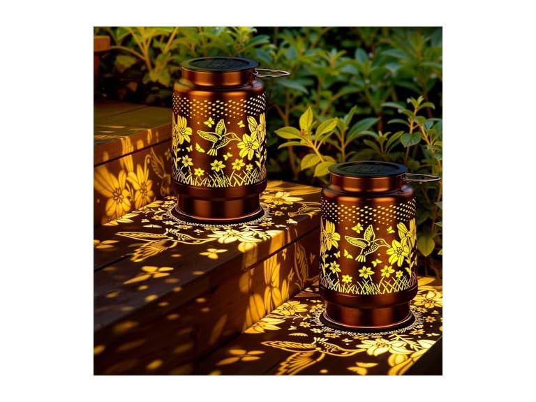 - (1) KagoLing Solar Lanterns Outdoor Waterproof Hummingbird 2 Pack, Birthday Gifts for Women Mom Grandma, Garden Decor Hanging Solar Lights Outdoor Metal Lantern Decoration Outside for Yard, Patio