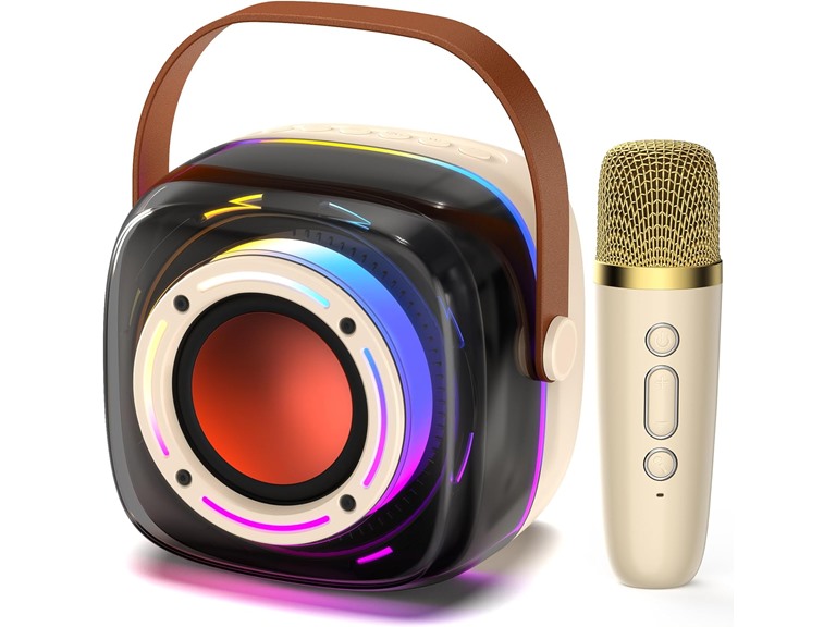 - Fun Voice Change & LED Lights: This mini portable karaoke machine has 6 dynamic LED light modes that are synchronized to the rhythm of the music. And it supports 5 voice change modes, including original, male, female, kids and monster voice, adding fun atmosphere to your party.