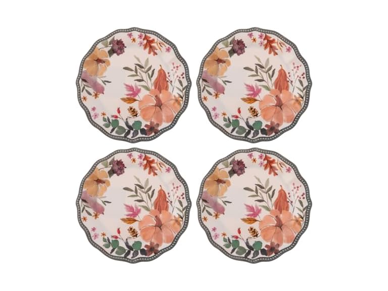 - Karma, 8.75 inches Melamine Salad Plates Set of 4, Reusable Dishwasher Safe Plates for Outdoor and Indoor, Autumnal Spice