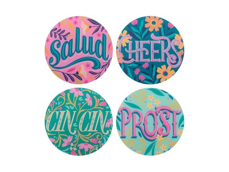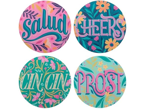 - Make a statement with our whimsical Acrylic Coasters! This set of 4 features unique designs that will charm your guests and add a touch of fun to your tabletop.