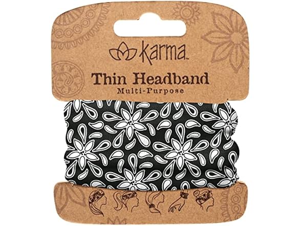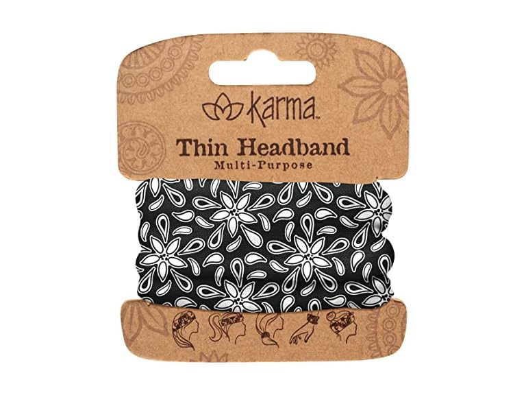 - Karma Black and White Floral Headband for Women - Thin - Fabric Headband and Stretchy Hair Scarf - Black And White