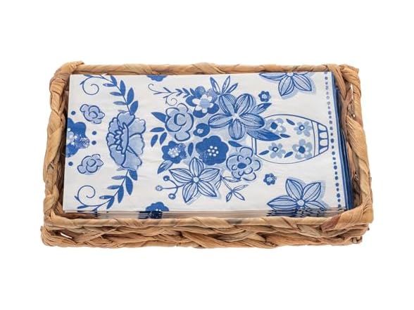 - Karma, Woven Napkin Holder with Paper Napkin Set, Blue