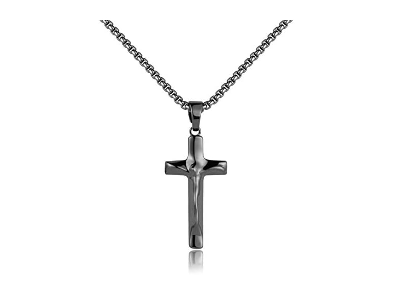 - ✞Excellent Material✞ This necklace uses highly polished lead-free brass with smooth backside. The shiny black crucifix necklace is plated with black ruthenium. The plated colors can last for a long time and do not fade away. Additionally, the necklace is nickel-free and cadmium-free and there is no any harm or hurt to your skin or health.