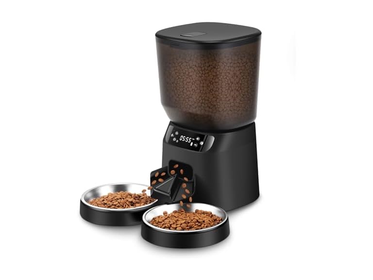 - Feed Two Cats: The automatic cat feeder is perfect for two pets. It features a unique meal divider that ensures an even distribution of food, preventing any potential conflicts between the two cats during mealtime, perfect for long weekends and short business trips, providing you with peace of mind for 2 happy and well-fed pets.