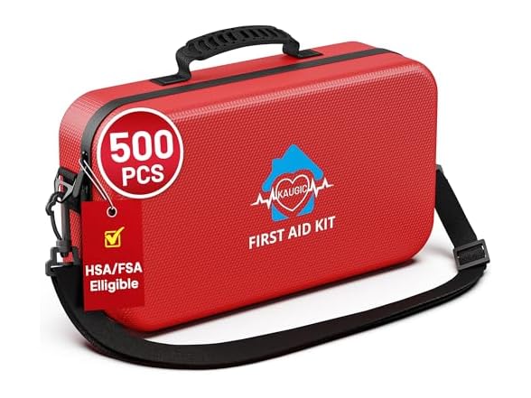 - Ready for Any Emergency: KAUGIC 500-piece first aid kit delivers a diverse range of premium medical supplies. Survival Kit is essential for home, offices, outdoor adventures like camping/hiking/boating, car/road/rv/cruise trips, sports activities, travel, workplaces, and schools. Stay prepared and confident in any situation, indoors or out