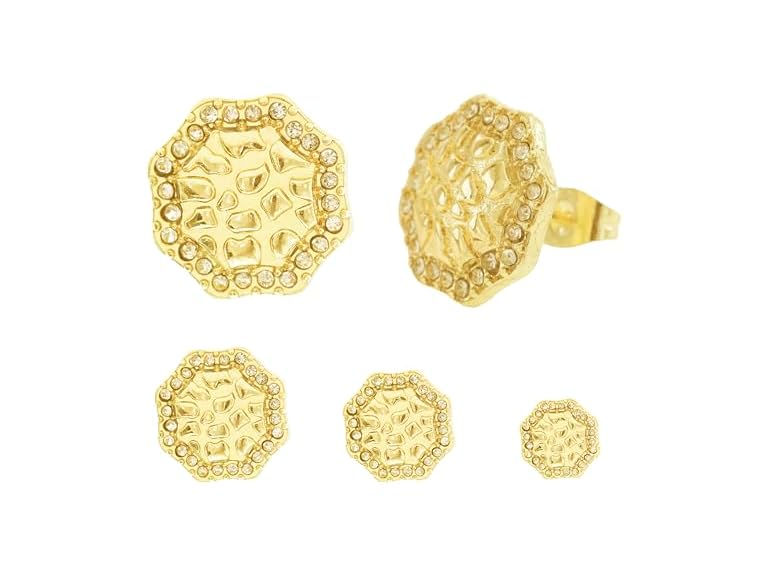 - (1) Kavfeeo Cubic Zirconia Stud Earrings, Gold Nugget Earrings for Men, Cookie Nugget Earring, Gold-Plated Stud, 14K Gold-Plated Round Rough Textured Studs Earring for Women and Unisex(L)
