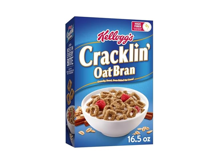 - (1) Kellogg's Cracklin' Oat Bran Breakfast Cereal, Fiber Cereal, Family Cereal, Original, 16.5oz Box (1 Box)