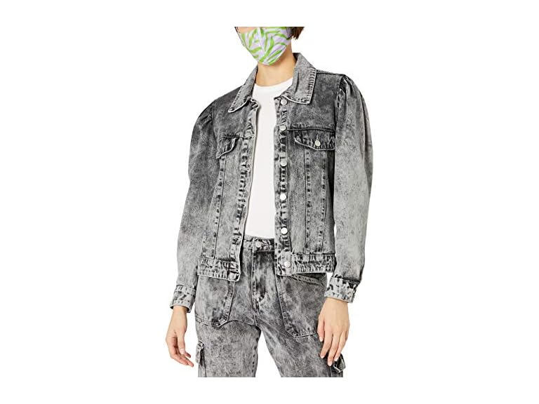 - (1) KENDALL + KYLIE Women's Puff Sleeve Denim Jacket - Amazon Exclusive, Gray Tie Dye Wash, Large