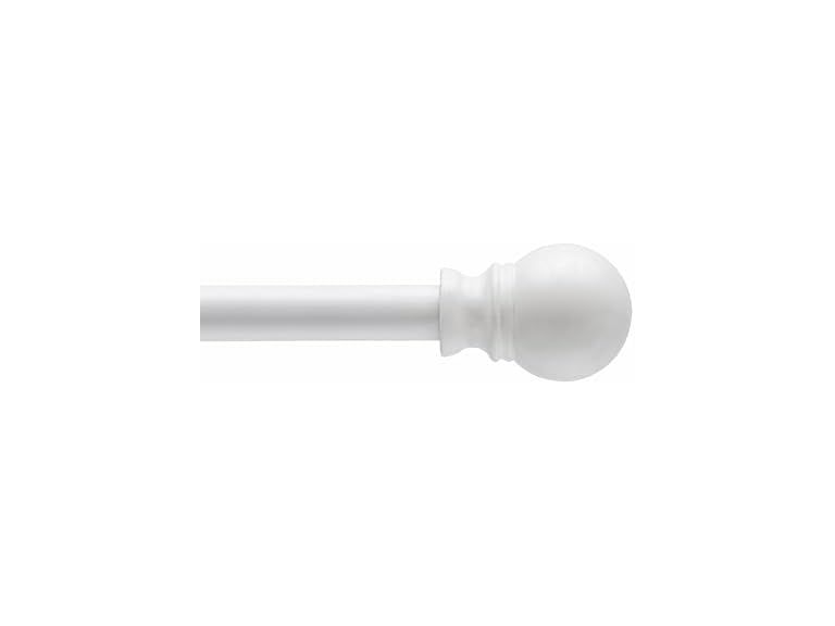 - Steel rod in white finish with decorative ball end finials and matching mounting hardware