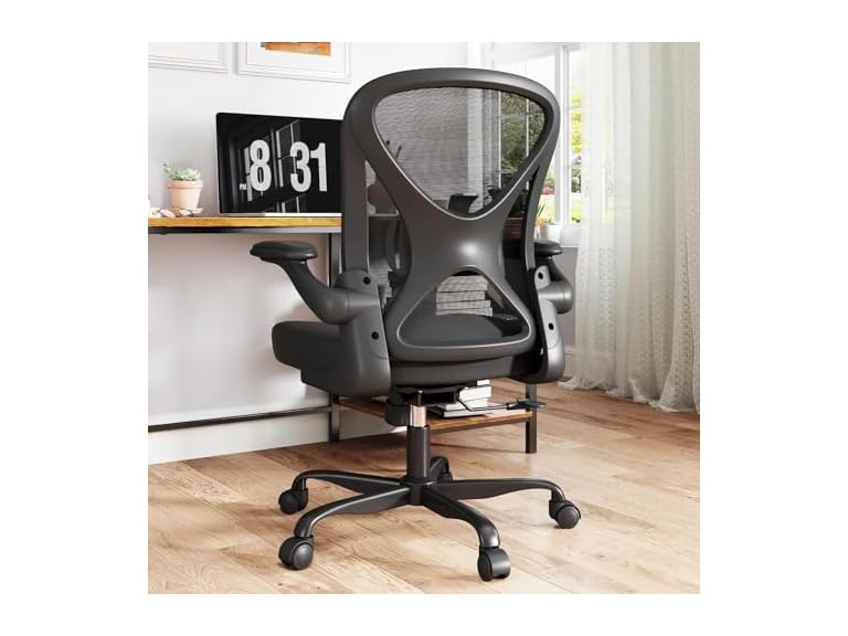 - MULTI-FUNCTIONALITY: This office chair features a smooth tilt recline mechanism. The office desk chair's flip-up armrests offer flexibility and space-saving storage, while adjustable lumbar support perfectly aligns with your lower back