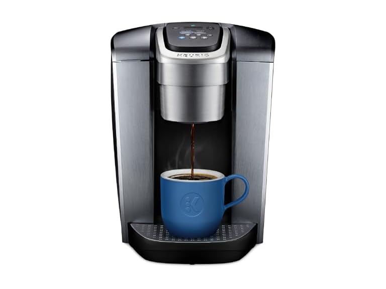 (1) Keurig K-Elite Single Serve K-Cup Pod Coffee Maker, with Strength and Temperature Control, Iced Coffee Capability, 8 to 12oz Brew Size, Programmable, Brushed Silver