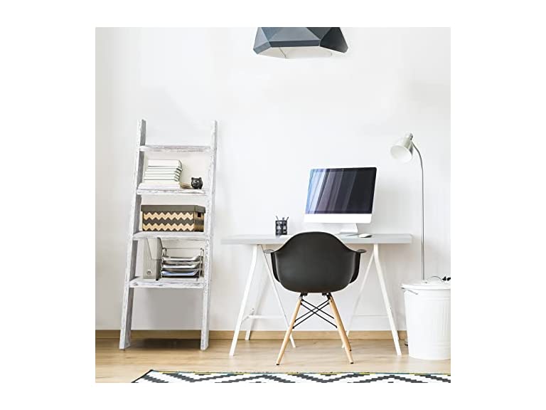 - This 4-shelf Ladder Shelf gives you MORE STORAGE SPACE, perfect for displaying unique decorations, photo frames, magazines, plants, books and more. Make the most of CORNER SPACE.