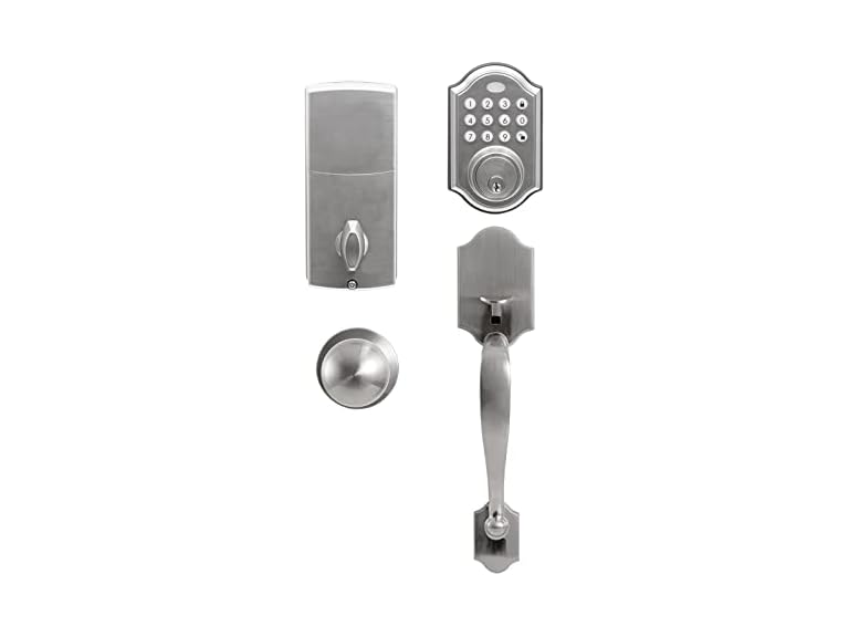 - KIAYACI Front Door Lock Set Door Handle Sets Entry Door Locksets with Keypad Deadbolt Single Cylinder HandleSet with Curved Handle Lower Half Grip, Silver