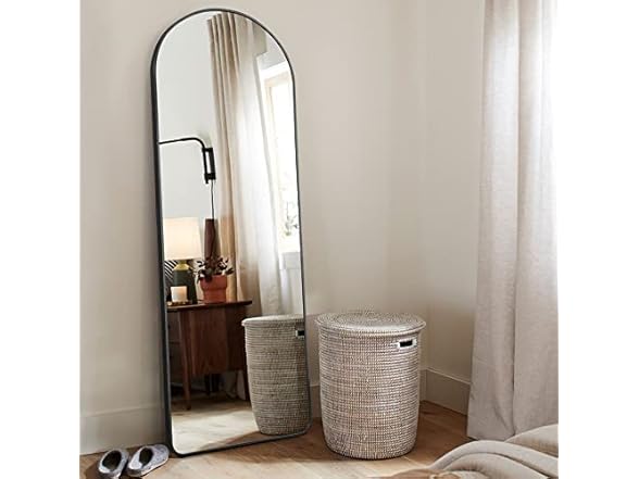 - (1) KIAYACI Arched Full Length Mirror with Stand - Bedroom Dressing Mirror for Full Body (Black, 59" x 20")