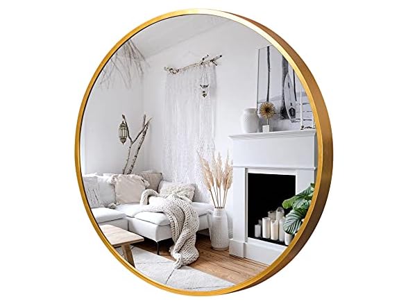 - (1) KIAYACI Round Wall Mirror Large Circle Mirrors for Bathroom Living Rooms-Aluminum Alloy Frame, Shatteproof Glass (Gold, 28")