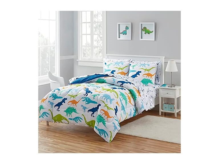 - Includes: (1) Comforter 68 in x 88 in, (1) Pillow Sham 20 in x 26 in, (1) Fitted Sheet 39 in x 75 in, (1) Flat Sheet 66 in x 96 in, (1) Pillowcase 20 in x 30 in