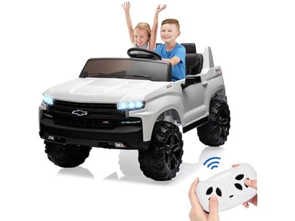 - Kids Electric Ride on Car 2-Seater Truck, 24V Battery Powered SUV Licensed Chevrolet with Parent Remote Control, 4 Spring Suspension, Storage, Music, Lights, Double Open Doors for Boys Girls, White