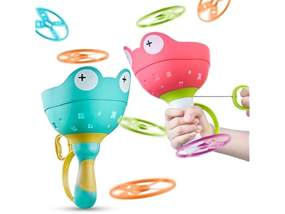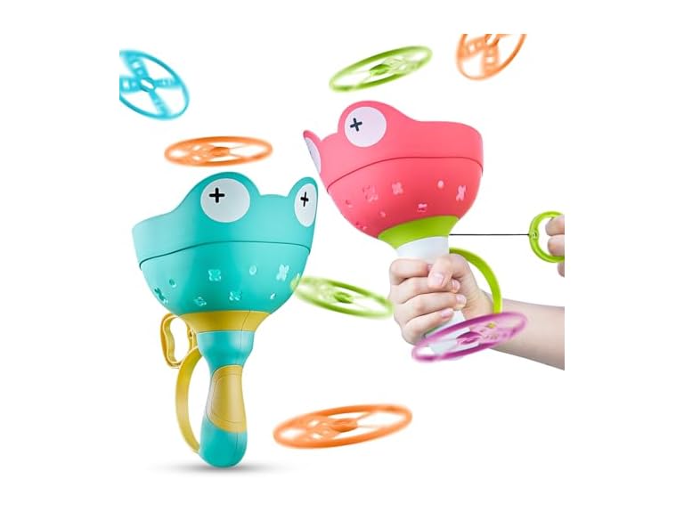 - Games for Kids Ages 4-8: Outdoor games with 24 discs and 2 Frog Hand Launch Catcher. Easy to play. Children just need to pull the launchers pull ring and the frog's head will launch flying disc, which children need to catch with launchers, and children will have fun trying to chasing them. The one who catches the most discs wins