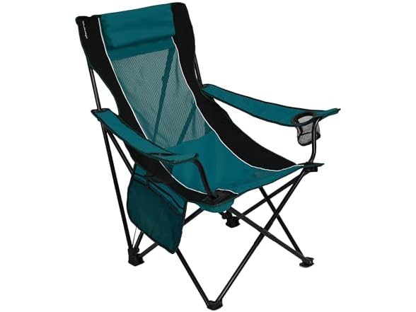 - Designed for Comfort and Convenience - Get comfortable and relax with this portable chair featuring a cup holder, durable diamond ripstop polyester fabric, pocket cooler for drinks and a breathable mesh seat back to keep you cool.