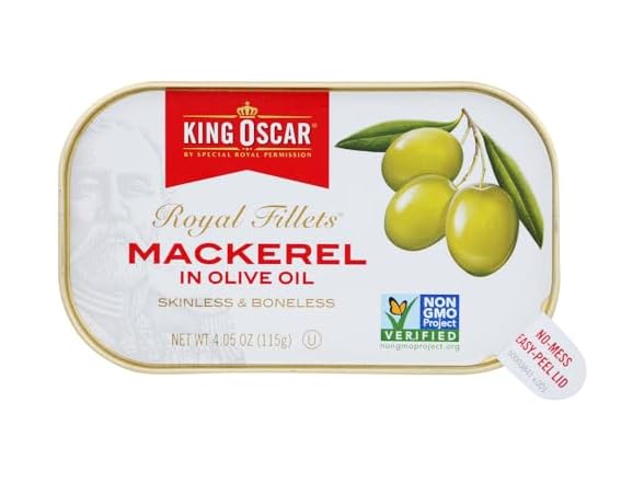 King Oscar Royal Fillets Skinless & Boneless Mackerel in Olive Oil (Pack of 1) 4.05 oz Can