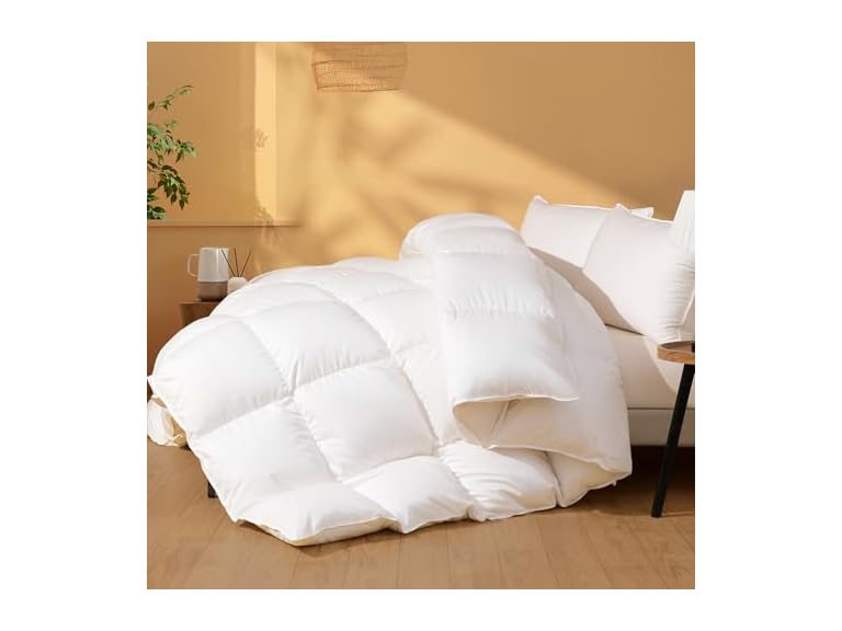 - 【Premium Fill Material】The down comforter is filled with 59% waterfowl feather fibers, 28% down fibers, and 13% waterfowl feathers. Pure natural feathers ensure exceptional warmth and hypoallergenic properties. This duvet insert has passed the OEKO-TEX Certification, ensuring it is soft and odorless, and providing you with a safe sleeping experience.