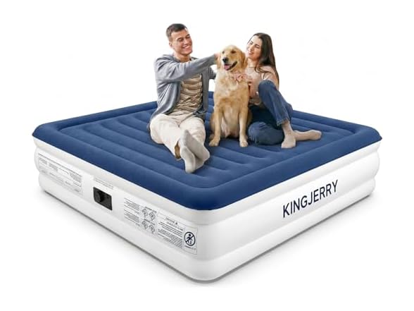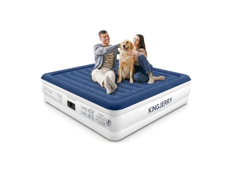 - (1) KINGJERRY Queen Air Mattress with Built in Pump, Blow Up Mattress Queen 18 Raised Comfort, Upgrade Surface Inflatable Mattress, Leakproof Air Bed for Home Guests&Camping, 800 lbs Max, 3-Min Inflation