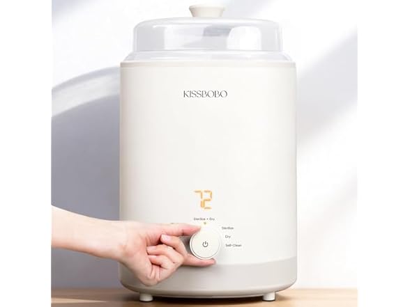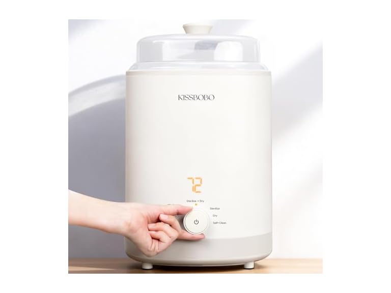 - One-Touch Smart Wash — Physical Steam Sterilization & Drying: Just press once — a 3-stage program begins: deep wash, 212°F physical steam sterilization that removes 99.99% of airborne particles, and 45-minute warm-air drying. No chemical residues, no extra steps. The KISSBOBO bottle sterilizer and dryer combines effective sterilization and drying, leaving bottles warm, pure, and ready for the next feed. Save precious time scrubbing, and spend it instead where it matters most — holding your baby close