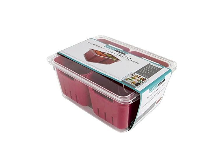 - STACKABLE: The Kitchen Spaces Twin Colander Bin includes a lid so you can stack it easily with other fridge and pantry organizers. It's a great way to maximize kitchen storage! The twin bin measures 9 x 7 x 4-inches.