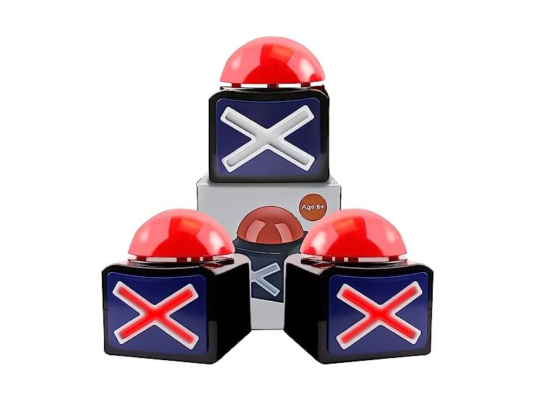 - 【Powered by AA*2 Batteried】-The game show buzzers are powered by 6 x AA batteries (Not included). You will get three game buzzers button with light and sound.