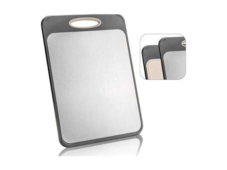- Large chopping board: Large Size 16”×11”. Our metal cutting boards are durable and designed for heavy-duty use in the kitchen