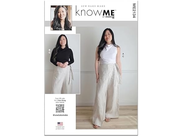 - (1) Know Me ME2134Y5 Misses' Trouser and Draped Mock Neck Knit Top Sewing Pattern Packet by Sew Bake Make, Design Code ME2134, Sizes 18-20-22-24-26