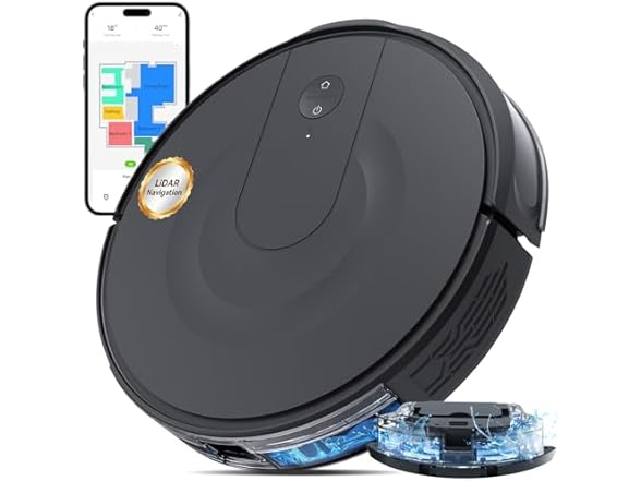 - [๐๐ซ๐๐๐ข๐ฌ๐ ๐๐ข๐๐๐ ๐๐๐ฏ๐ข๐ ๐๐ญ๐ข๐จ๐ง & ๐๐ฆ๐๐ซ๐ญ ๐๐ฉ๐ฉ ๐๐จ๐ง๐ญ๐ซ๐จ๐ฅ]: Uses the latest in LiDAR navigation to quickly and accurately map your home, adjusting in real-time to provide efficient and thorough cleaning. Stores up to 5 different floor maps, making it perfect for multi-level homes, and easily navigates complex spaces for consistent cleaning results. The intuitive app lets you customize cleaning schedules, designate specific areas, and set up to 5 virtual walls and 10 no-go zones.
