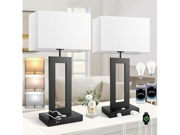 - γ2 ππππ πͺπππππππ πΌπΊπ© π·ππππ & 1 π¬ππππ π¨πͺ πΆπππππγEach living room nightstand table lamps featured with dual 5V/2A USB ports as well as an extra AC outlet, allowing you to juice up 3 devices (Phone, Ipad, Speaker, Music Player, Kindle, Mac Book, Computer and etc.) at the same time without any interaction effect. Both USB ports and AC outlet work regardless of the lamp sets are on or off. Just greet your morning with fully charged equipment with our set of 2 bedroom table lamps