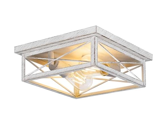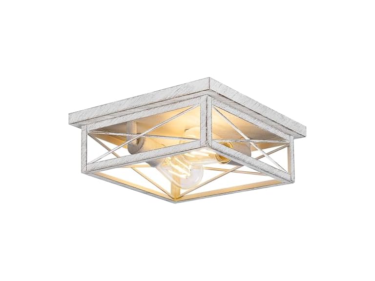 In the Box: (1) Kondras Antique White Hallway Light Fixture, 2-Light Farmhouse Flush Mount Ceiling Lighting, 1-Pack Metal Kitchen Lighting Fixture, Square