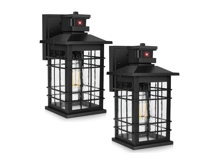 - (1) Motion Sensor Outdoor Wall Lights Black, Dusk to Dawn Outside Porch Lights Fixture Wall Mount, Waterproof Exterior Light Fixtures, 2-Pack Matte Black Wall Sconces Lantern for House Patio Garage