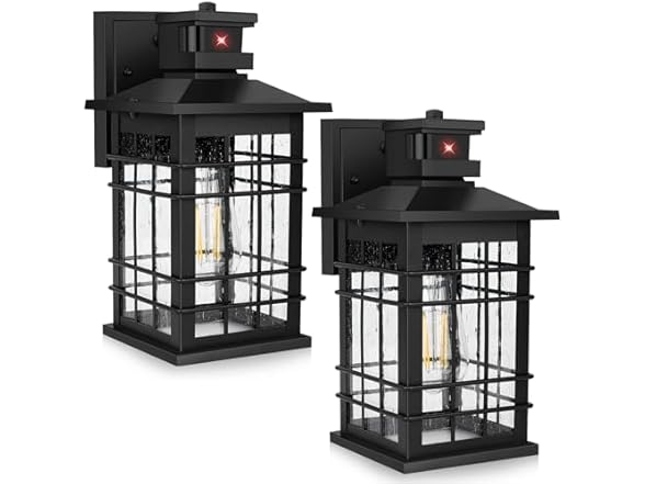 - Modern Appearance & Wide Application: Featuring a clean square design and matte black finish, our motion-activated outdoor wall lanterns suit a variety of decor styles, including farmhouse, modern, and industrial. The high-tempered seeded glass enhances durability while adding a warm, charming glow to your space. These are not only versatile dusk-to-dawn exterior light fixtures but also great additions to refresh your house, porch, garage, hallway, entryway, or doorway.