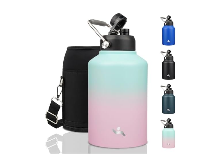 - (1) Konokyo 1 Gallon Jug with Handle,128 oz Insulated Water Bottle with Carrying Pouch,Double Wall Vacuum Stainless Steel Metal Bottle,Gum
