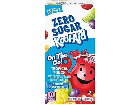 - Kool-Aid Zero Sugar Artificially Flavored Tropical Punch On-the-Go Powdered Drink Mix is delicious and sugar-free