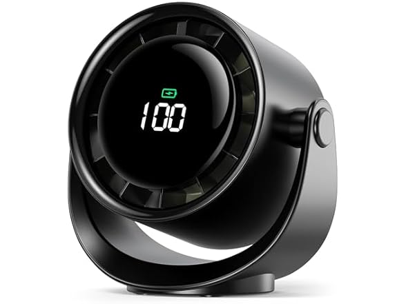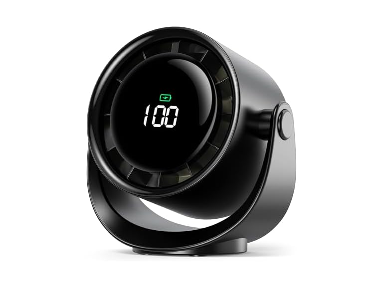 - Koonie Desk Fan, LED Display Mini Table Fan, Rechargeable Personal Fan with 4000mAh Battery, Max. 17H Use, 5 Speeds, 360°Tilt, USB-C Charging, Quiet Small Portable Fan for Home, Office, Camp, Travel