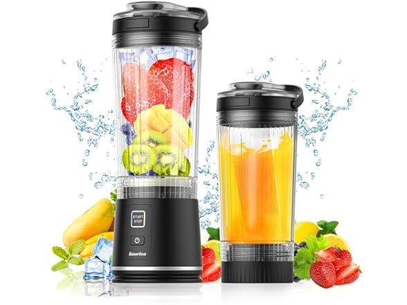 - 【USB-Recharged Anywhere】 This compact small blender is a convenient portable blender cordless with a built-in rechargeable battery. It easily charges via power banks, laptops, or any USB port (5V/2A adapter recommended for optimal performance). Get 15+ blending cycles on a full charge—ideal for travel, the office, the gym, and active lifestyles. It’s the perfect mini smoothie blender and a powerful electric blender for shakes, smoothies, and more—wherever you go