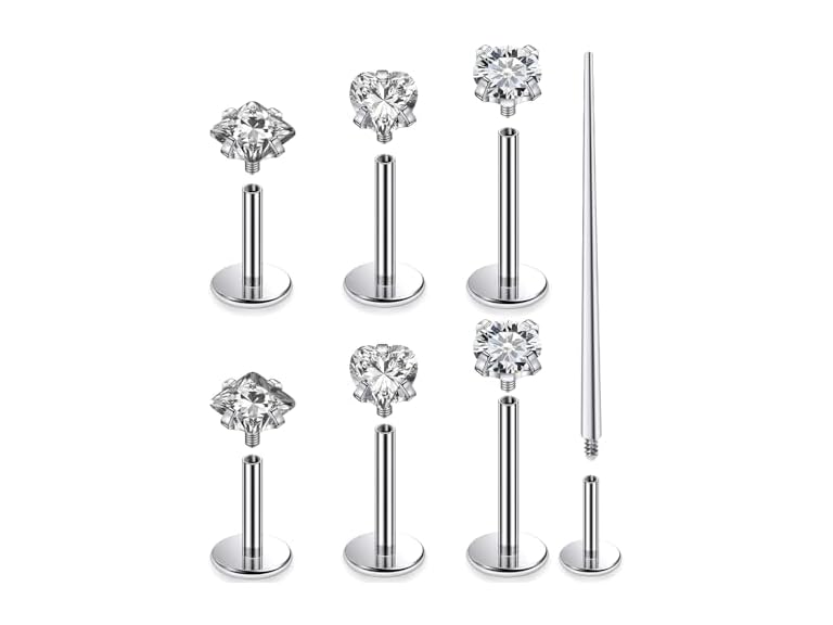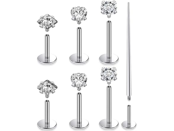 - (1) Kridzisw 20G 18G 16G F136 Titanium Flat Back Nose Rings Studs Implant Grade Screw on Nose Stud Hypoallergenic Lip Labret Piercings Tragus Cartilage Helix Earrings Piercing Jewelry for Women Men