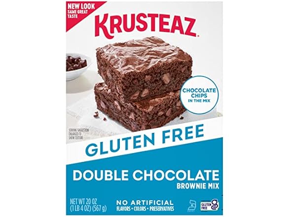 - (1) Krusteaz Gluten Free Double Chocolate Brownie Mix, Baking Mix, Includes Chocolate Chips, Certified Gluten Free, 20-ounce Box