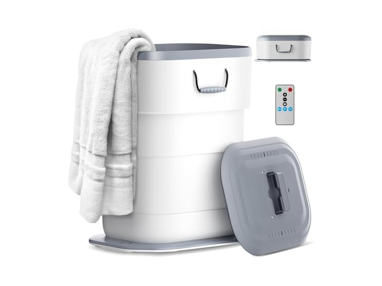 - 27L Mega Towel Warmer-Experience truly massive capacity. Unlike ordinary warmers, our 27L interior (36cm x 27.5cm x 46cm) is specifically designed to accommodate up to 4 oversized bath towels (40"x70") laid flat - no tight rolling or folding needed. This expansive heated space means your towels warm faster and more evenly, while also being able to heat multiple robes or blankets at the same time. The generous dimensions provide complete flexibility for family use, allowing everyone to enjoy perfectly warmed, fluffy towels after every shower. This isn't just a warmer - it's your family's personal warming closet.