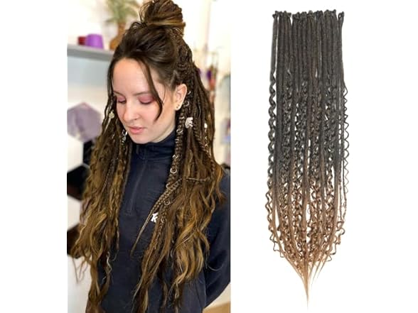 - (1) Kyriena 24 Inch 30 Strands SE Dreadlock Extensions Sets 3 In 1 Mixed Synthetic Dreads Extensions, Ombre Brown Straight&Curly&Boho Handmade Dreads Hippie Style Dreadlocks for Woman