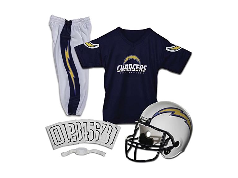 - (1) Franklin Sports Los Angeles Chargers Kids Football Uniform Set - NFL Youth Football Costume for Boys & Girls - Set Includes Helmet, Jersey & Pants - Medium