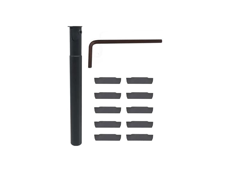 Inserts' model name: SP200,Cutting width:2mm/0.078in,Carbide inserts with CVD Coating. Coating endows inserts strong impact resistance, good versatility with high precision, high finish and high wear resistance; The carbide inserts with TIN coating,good wear-resistance, sharp and non-stick blade; 5/8 Shank ZQ1616R-2/3 Indexable Lathe Grooving Parting Holder:40CrMo Grooving Slotting Tool Cut Off Tool holders, 5/8in shank dia ,and 3.94in length, Screw compression type, quick and easy installation and removal.Quenching and hardening, stable processing and good shock resistance; Insert Applicaiton: suitable for processing steel, cast iron and stainless steel parts Package includes: 10pcs SP200 inserts + 1pc ZQ1616R-2Holder