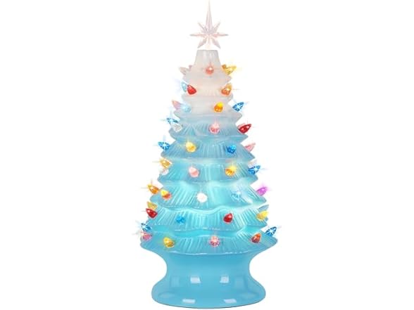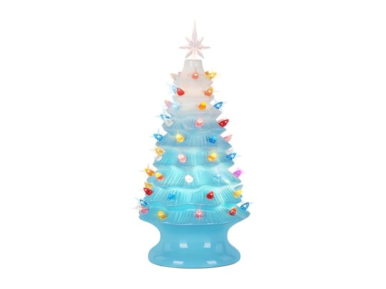 - Perfect Tabletop Size & Design: This 16.5 inch prelit Christmas tree features a hand-painted finish, giving each piece a unique, artisanal touch. Topped with a radiant seven-point star, it brings classic elegance to your holiday decorations